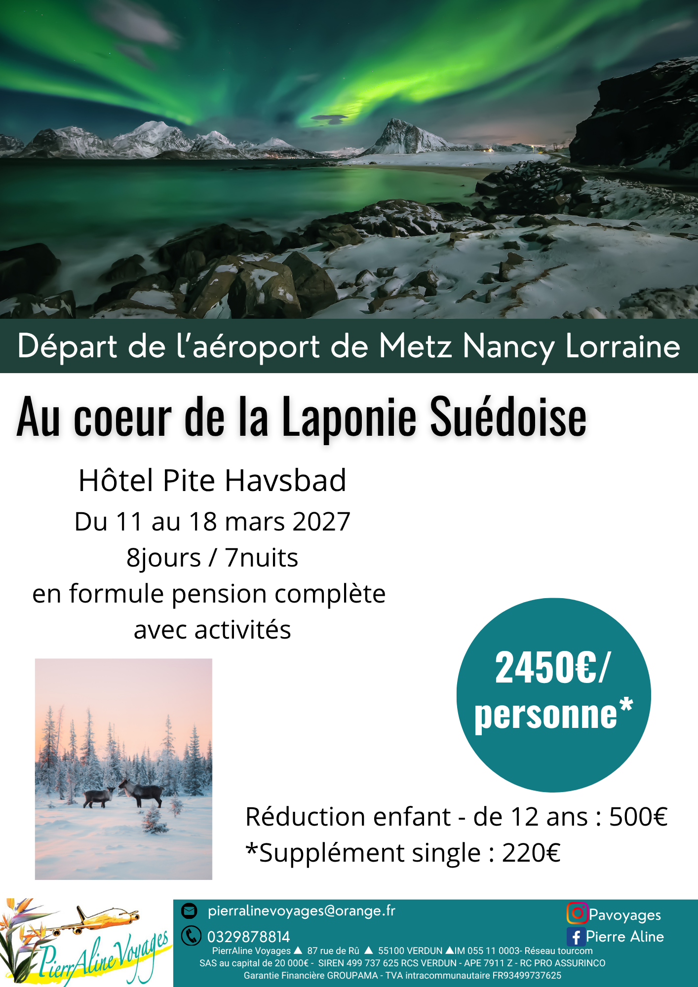 Au cœur de la Laponie Suédoise du 11 au 18 mars 2027 départ de l'aéroport de Metz/Nancy Lorraine